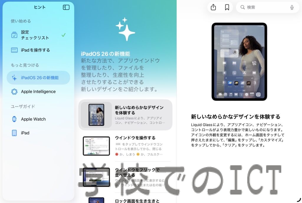 個人的にはLiquid Glass好きなんだけど、表示画面のカスタマイズ性が上がれば上がるほど、学校の現場では…良いことばかりではないと思うんだよね。