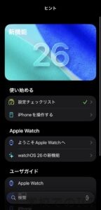 ↓ [ヒント]を開いた後で画面上部の「新機能26」の表示部分をタップする