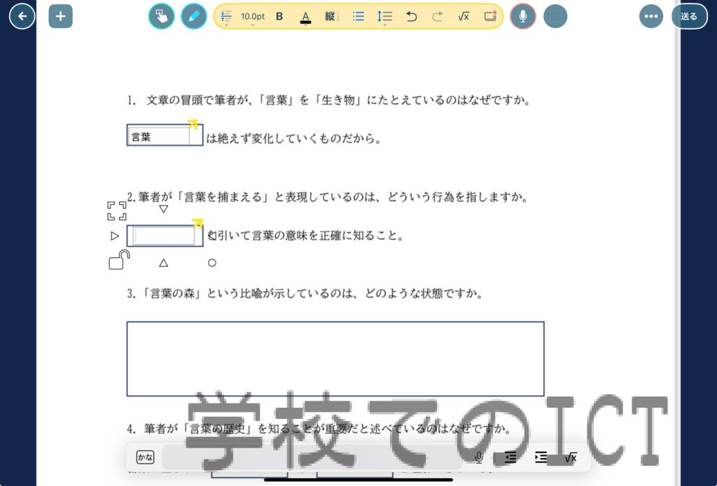 テキストボックスというよりロイロノートの場合は、カード内に背景透過のカードを追加するんですが…