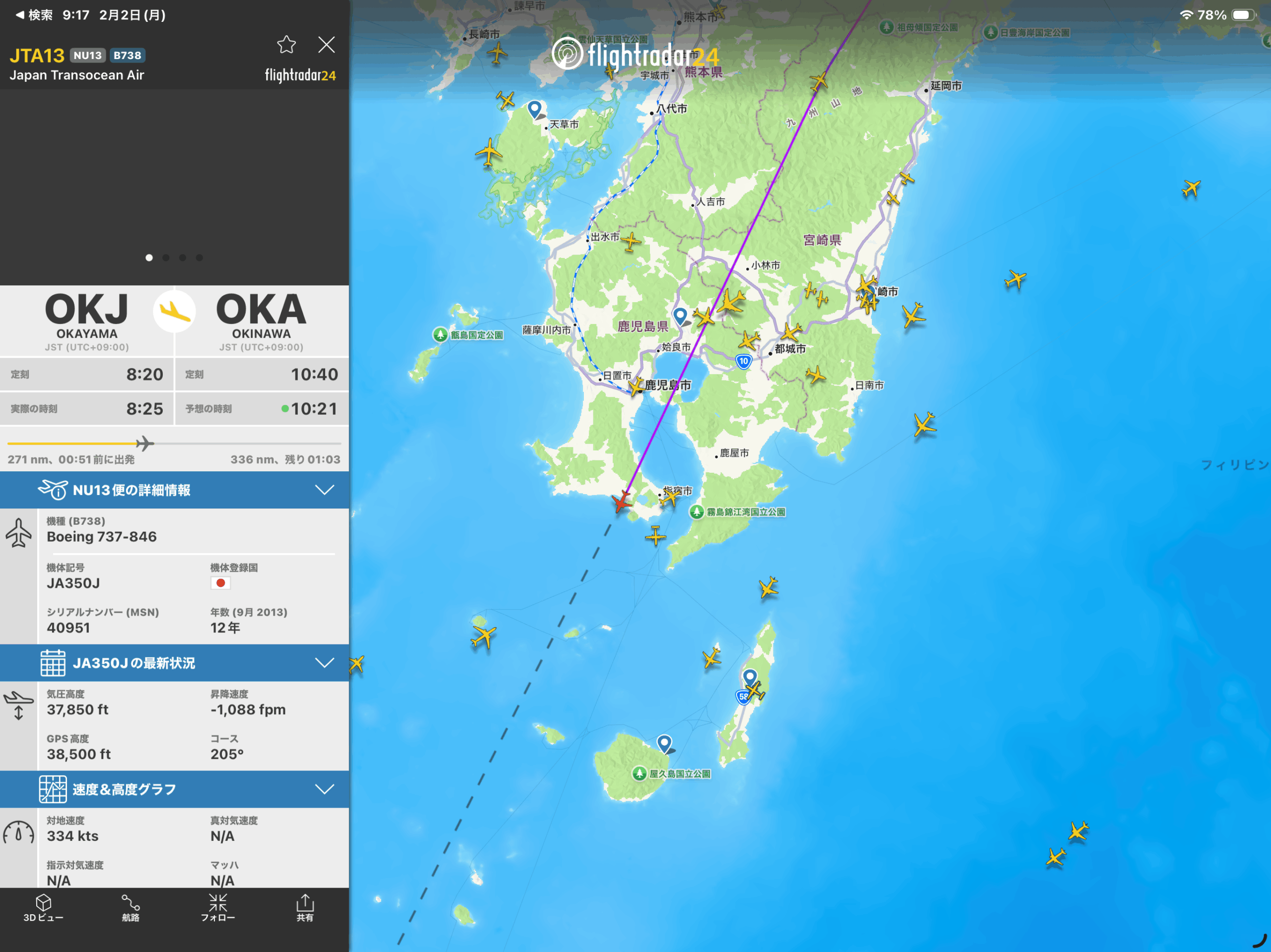 普段はANAに乗りますが、特殊な路線のためJTAにて移動中。