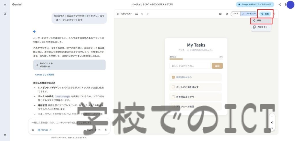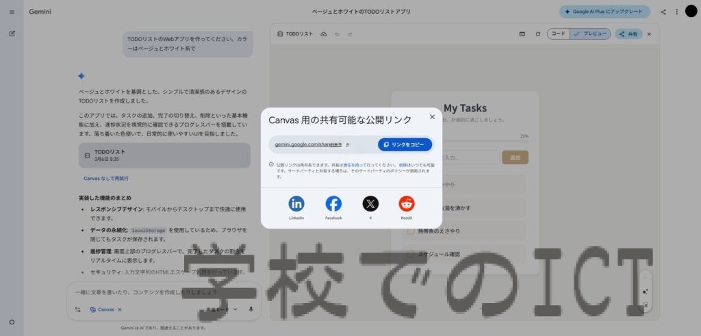 Webアプリとして使用したい場合や他の方と共有したい場合は、右上の「共有」を押すと公開用のリンクが生成されます。